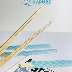 Các bạn có thể lấy riêng đũa gỗ kèm tăm, hoặc lấy loại đũa bọc hở theo quy cách đóng gói sản phẩm. Hapobe nhận in, dán tem trên túi với số lượng lớn.