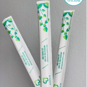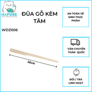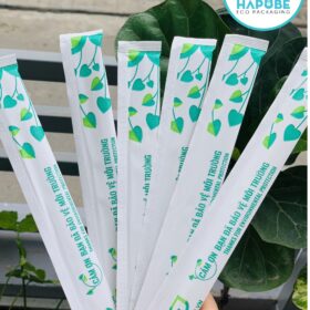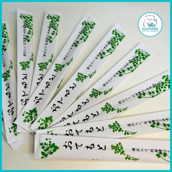 Các bạn có thể lấy đũa gỗ kèm tăm, hoặc lấy loại đũa bọc hở theo quy cách đóng gói sản phẩm. Hapobe nhận in, dán tem trên túi với số lượng lớn.
