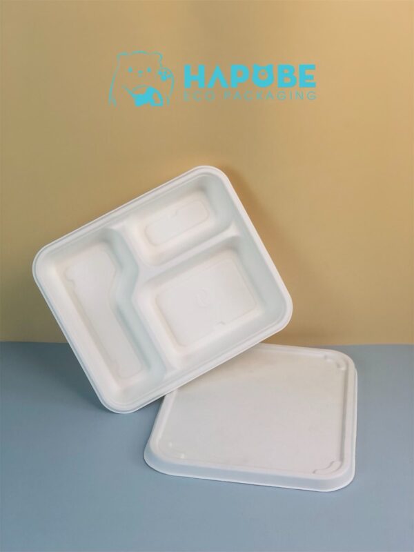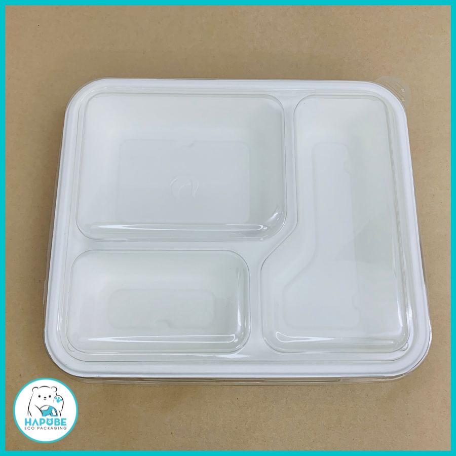 Hộp Bã Mía 3 Ngăn Trắng 1000ml