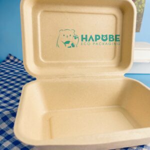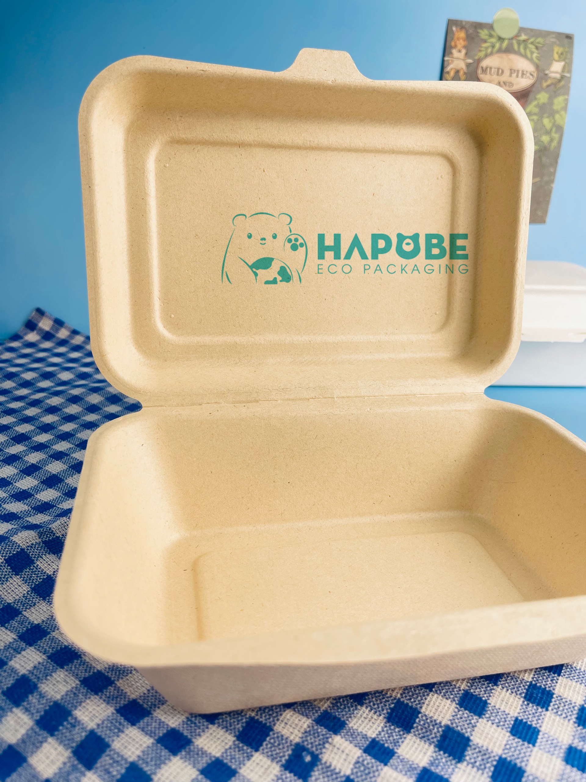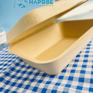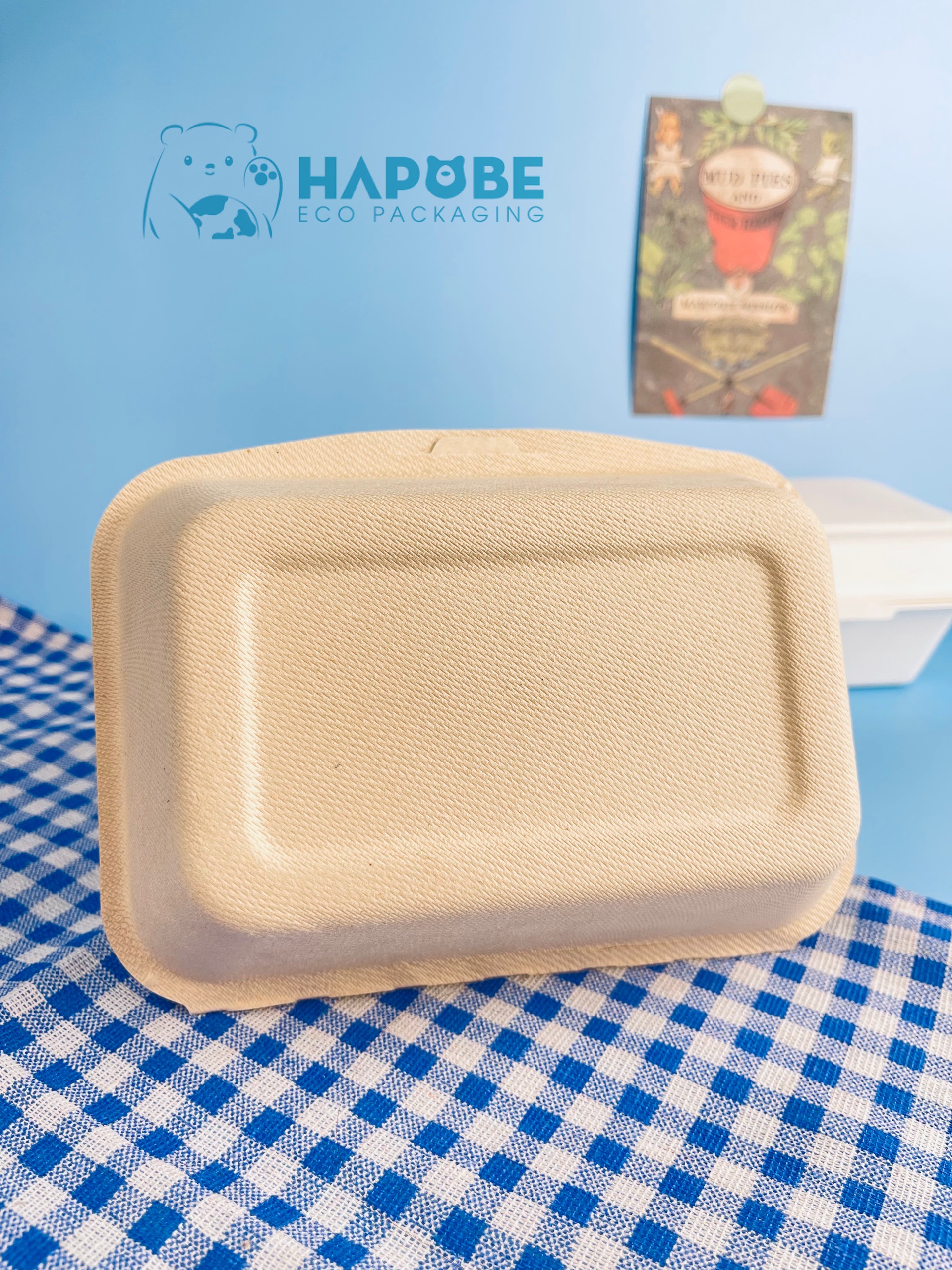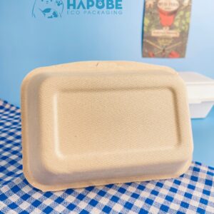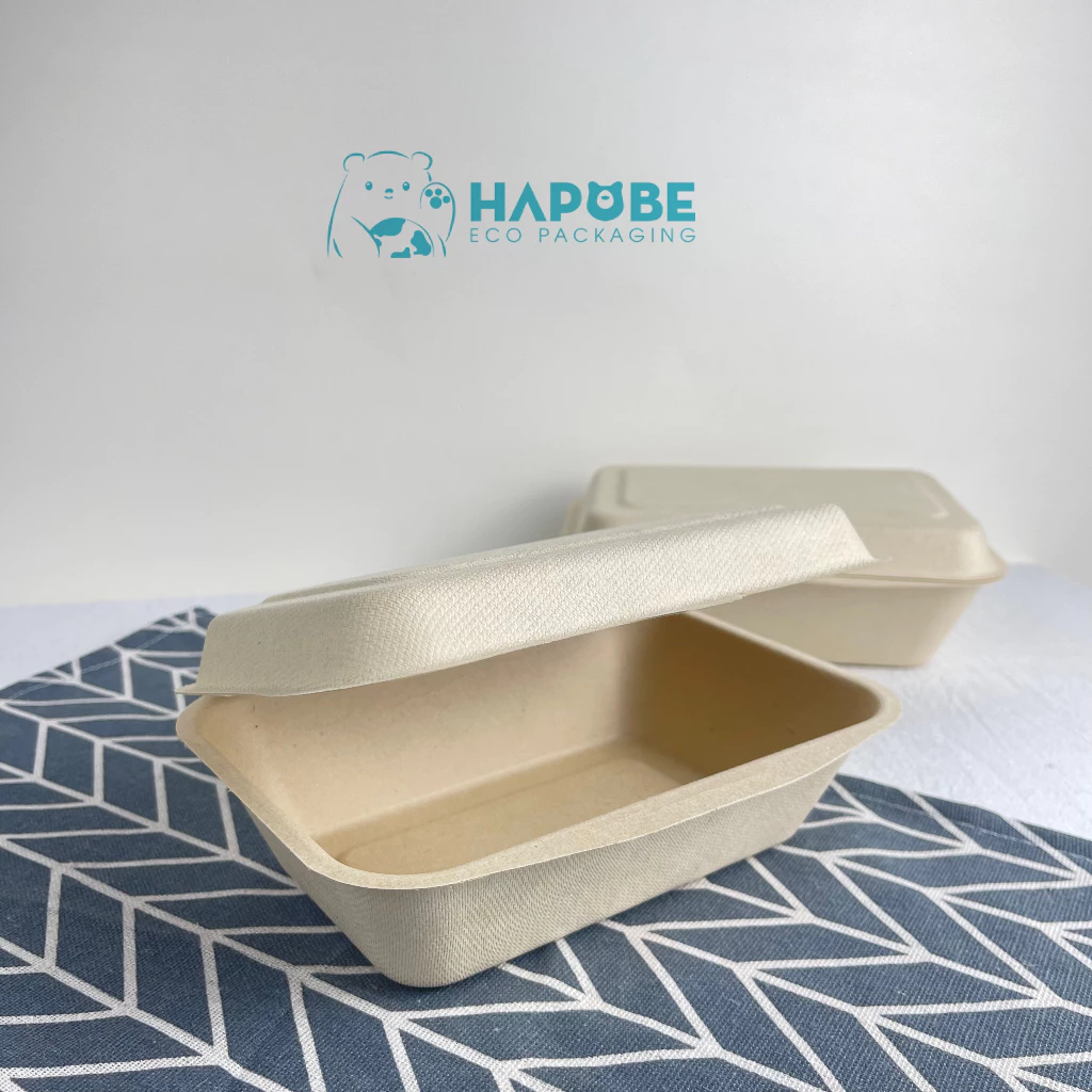 Hộp bã mía vỏ sò chữ nhật, hoàn toàn đảm bảo vệ sinh và an toàn tiếp xúc các loại thực phẩm. Quá trình sản xuất không sử dụng thêm bất kì loại keo hay phụ gia nào, ngoại trừ phụ gia chống thấm đạt tiêu chuẩn an toàn thực phẩm.