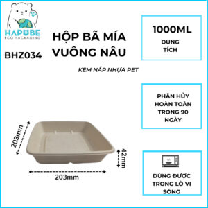 Khám phá sự hoàn hảo trong từng bữa ăn với hộp bã mía vuông nâu 1000ml của Hapobe – sản phẩm tiên phong mang đến không chỉ tiện ích mà còn cả ý thức bảo vệ môi trường.