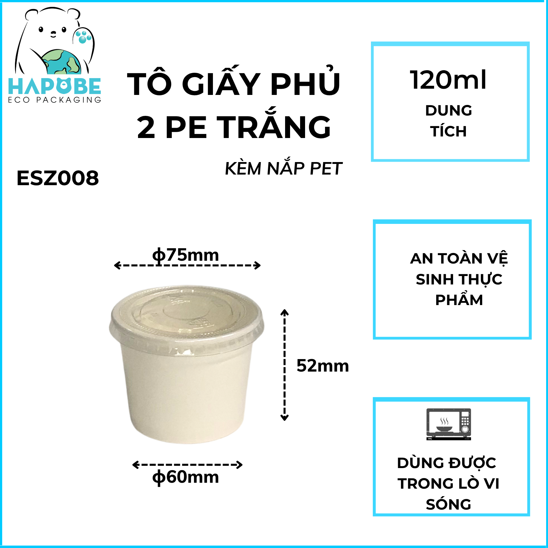 Tô Giấy 2PE Trắng 120ml Kèm Nắp