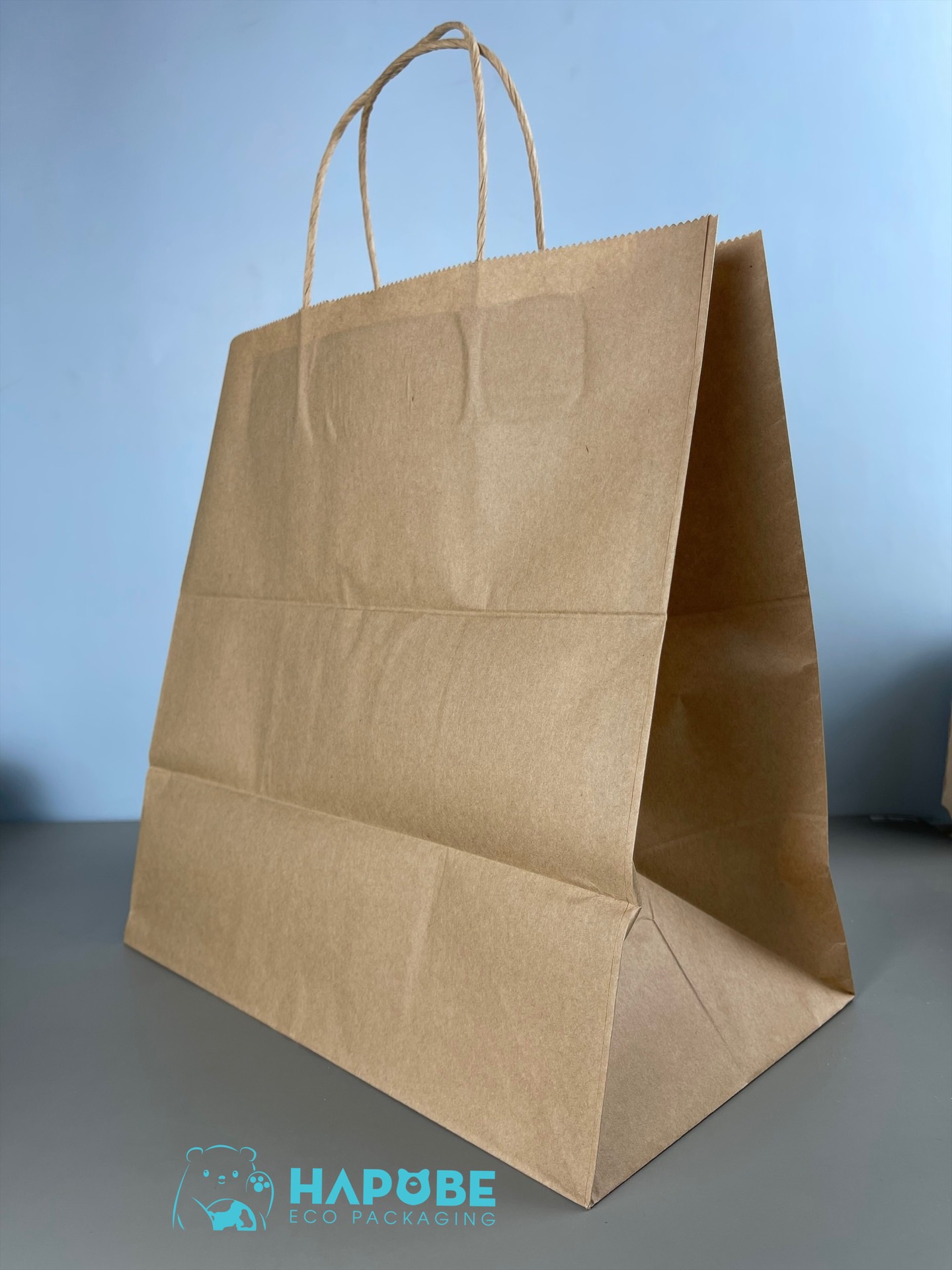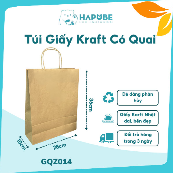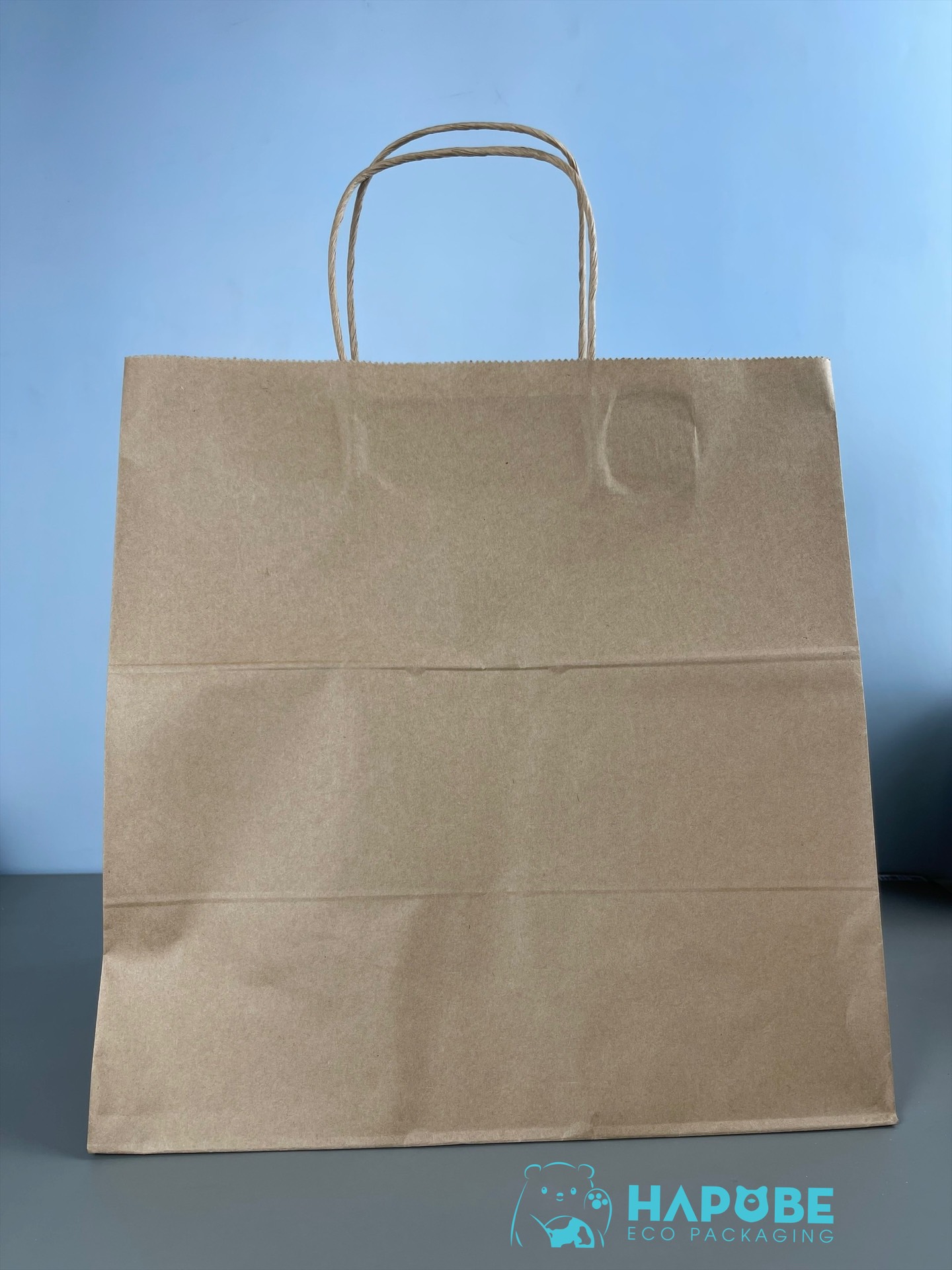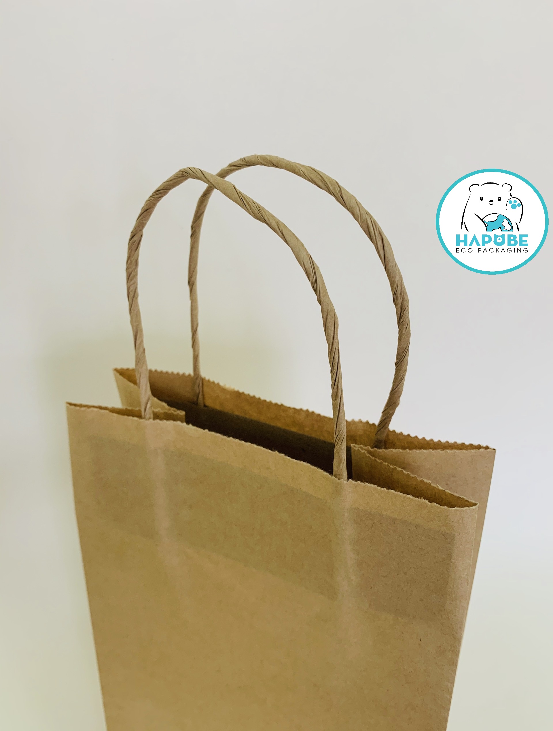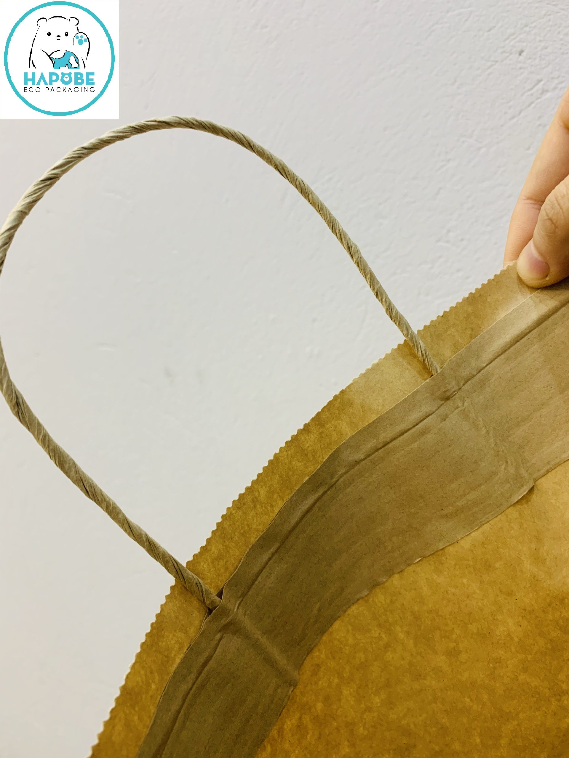Quai túi giấy xoắn chắc chắn, cùng chất liệu với thân túi.